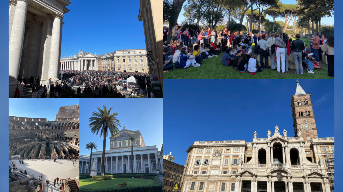 « On a vécu plusieurs messes en grand groupe à 200, et j’ai même eu l’occasion de servir avec V. et A. On a visité la basilique St Pierre, Sainte-Marie-Majeure ou encore St Paul Hors les murs. Aussi, on a visité de nombreux monuments et lieux iconiques de Rome, la place d’Espagne, le Vatican, la fontaine de Trevi et le Colisée où j’ai fait la visite pour le groupe de La Pro, c’était super drôle. Enfin, on a rencontré les communautés St Egidio et de l’Emmanuel, et un futur prêtre qui étudie au séminaire français. Ces personnes nous ont montré comment nous pouvons nous aussi servir notre Dieu. On s’est fait plein de copains qui viennent d’établissements de tout le diocèse. Le talent show organisé le dernier soir m’a énormément marquée. » T.